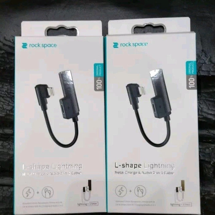 Rock Space L Shape Lightning Metal Charge & Audio 2 in 1 Cable